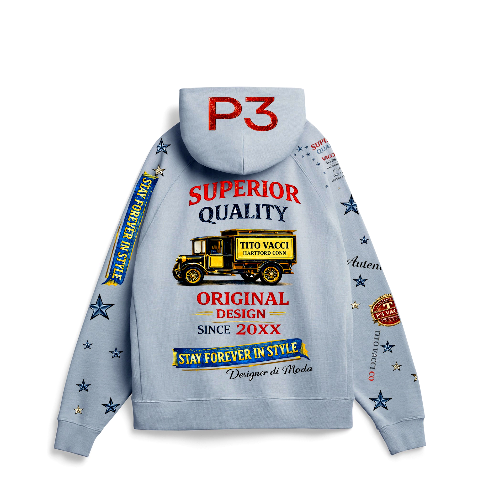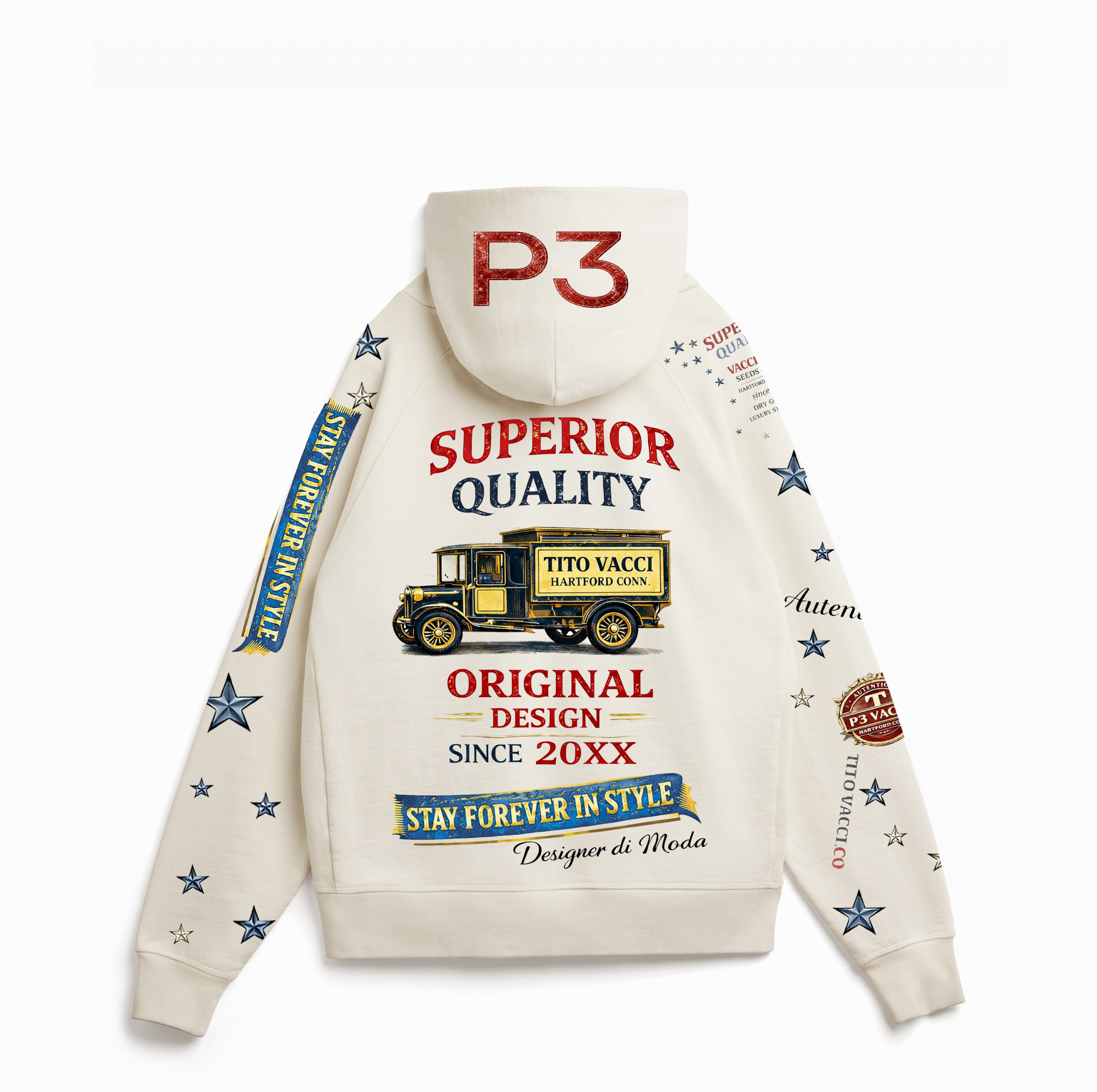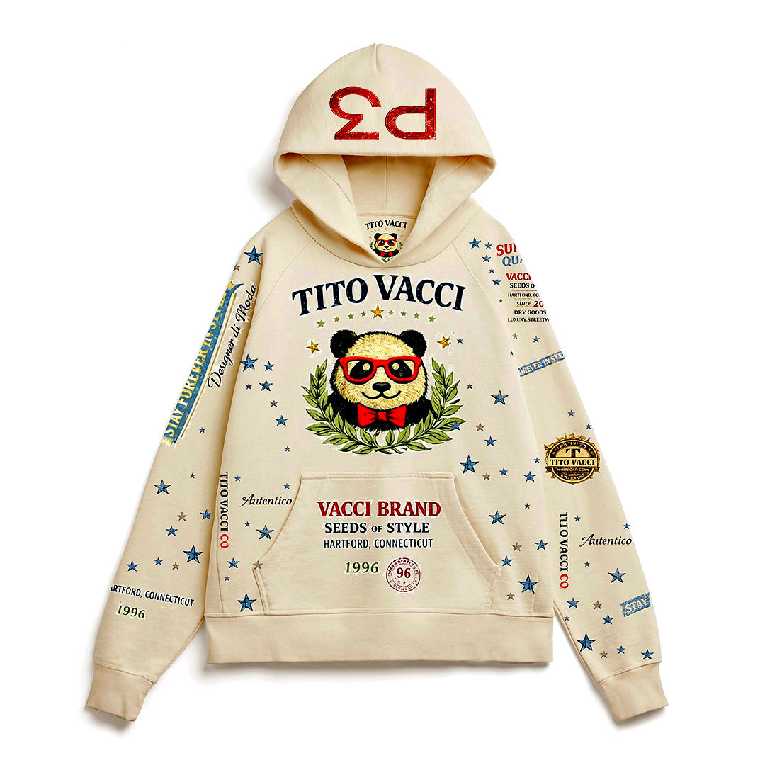 Elevate your everyday look with the Tito Vacci P3 “Seeds of Style” Hoodie — where heritage design meets modern luxury streetwear.
